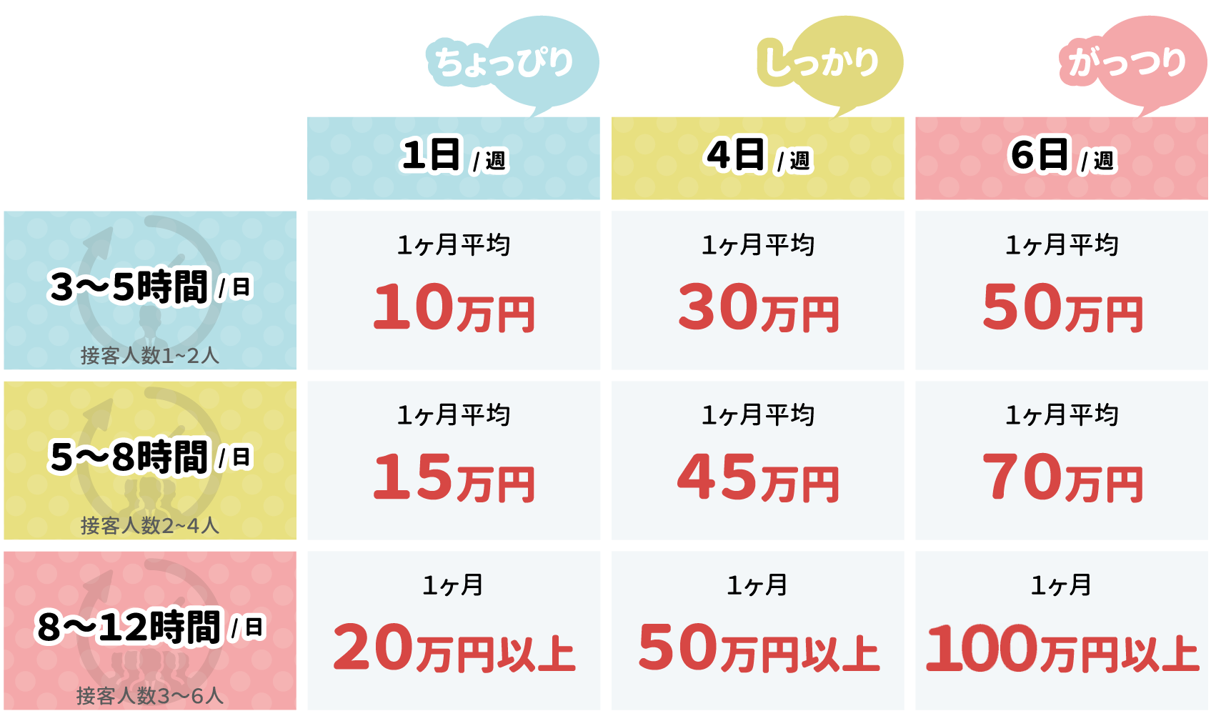 ※本指名が増えると基本給、指名料が増えます。